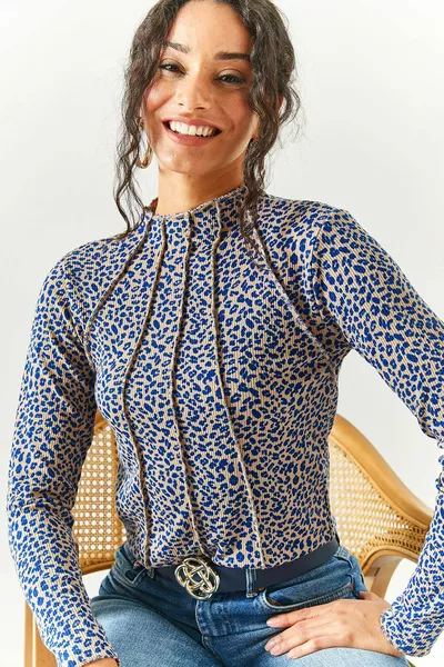 المرأة الأزرق الرخامي نمط إصبع التفاصيل bodysuit