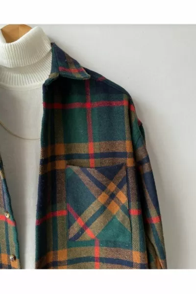نسائي أزرق كحلي جيب كبير الحجم قميص موسلين