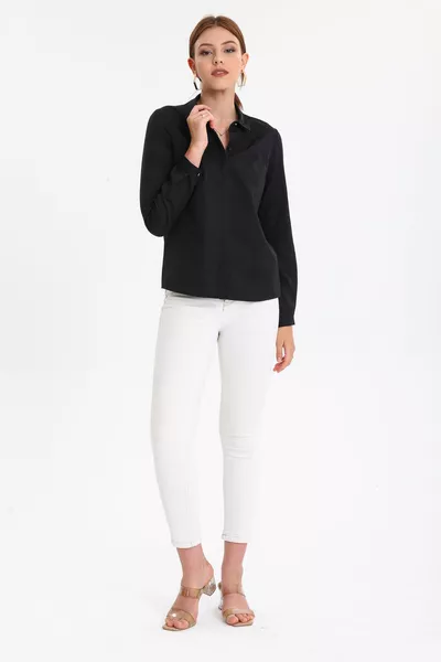 المرأة السوداء كاميسول حزام واسع أزرار بلوزة المحاصيل