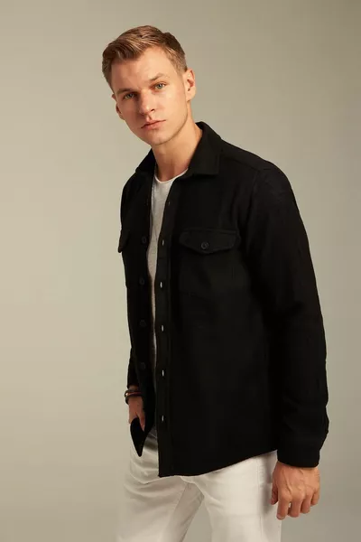 الرجال أسود كلاسيك طوق قطني منقوش