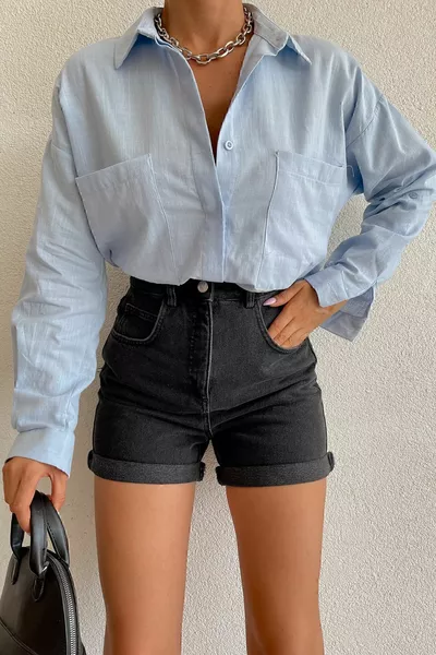ليمون أصفر الأكمام رث غسل الشاش فضفاضة عارضة تناسب قميص نسائي أساسي |