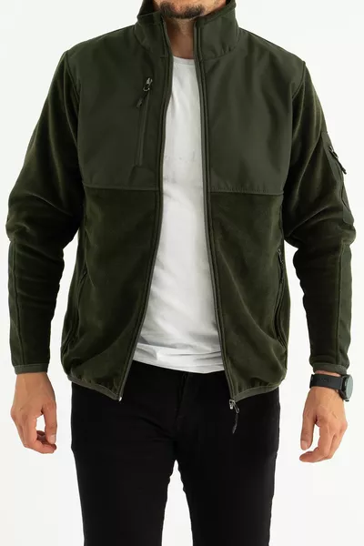 الرجال الأخضر متماسكة سترة طاقم الرقبة غير الريش تناسب العادية