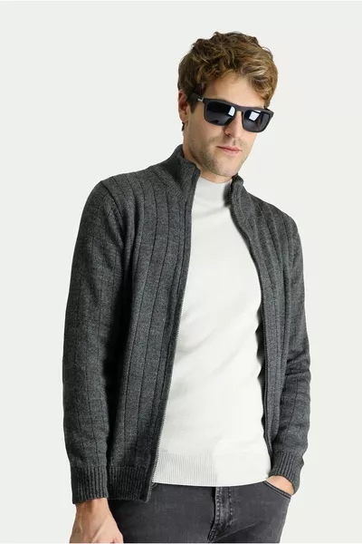 الرجال أنثراسايت-ميلانج ستاندرد فيت عادي قطع مكافحة الشعر طاقم الرقبة متماسكة سترة