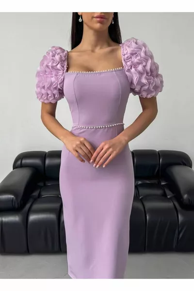 المرأة الوردي بالون الأكمام بريق فستان مساء طويل
