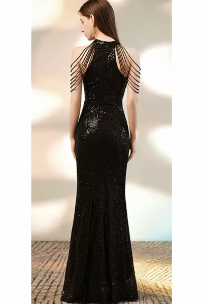 المرأة مرنة الغواص النسيج شق واحد الكتف مفصلة ماكسي الأسود مساء اللباس