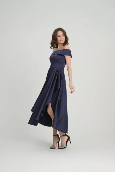 ثنى مفصلة الساتان النسيج مساء اللباس الأزرق الداكن