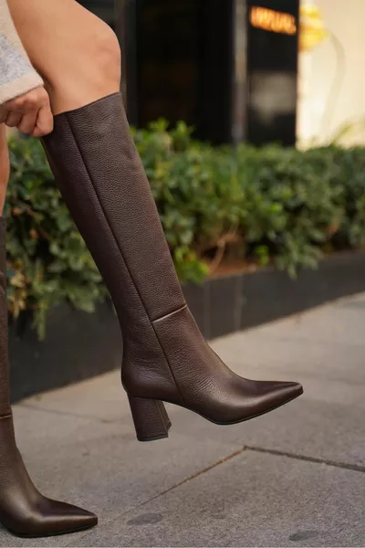 المرأة حقيقية من جلد الغزال الأسود أحذية طويلة Bihter مع منصة خفية