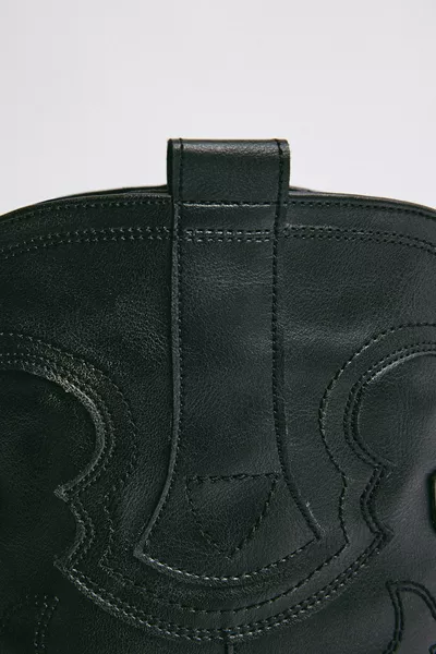 حذاء على غرار رعاة البقر مع أنف أسود الجلد والتطريز الأبيض على الجانبين