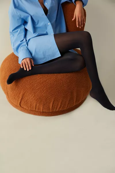 المرأة الكستناء تناسب دن جوارب طويلة رقيقة لامعة