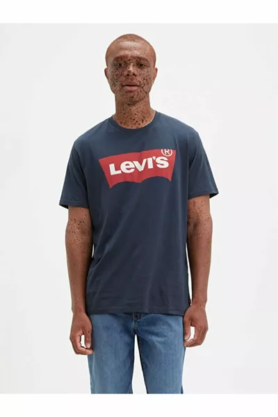 تي شيرت أسود بطبعة شعار، واسع / قصّة كبيرة