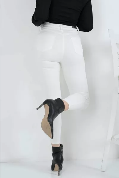 بنطلون نسائي أبيض بحزام واسع الساقين