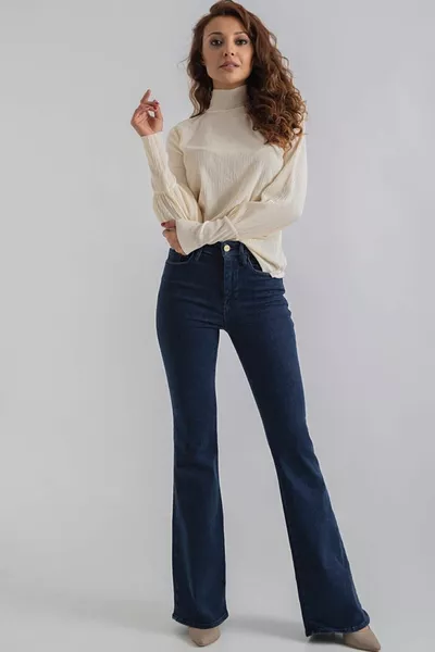 بنطلون جينز نسائي أزرق واسع الساق واسع الساق