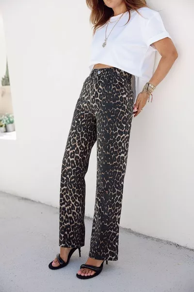 بنطلون جينز بالازو أسود الخصر العالي للسيدات