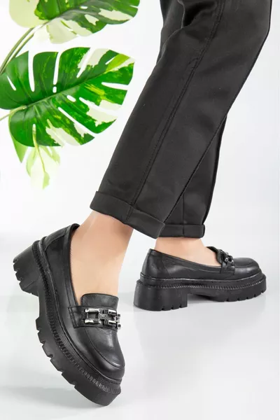 حذاء لوفر جلد طبيعي أسود للسيدات