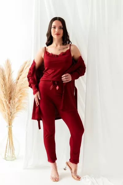 طقم بيجامة بورجوندي منقوش بالأزهار