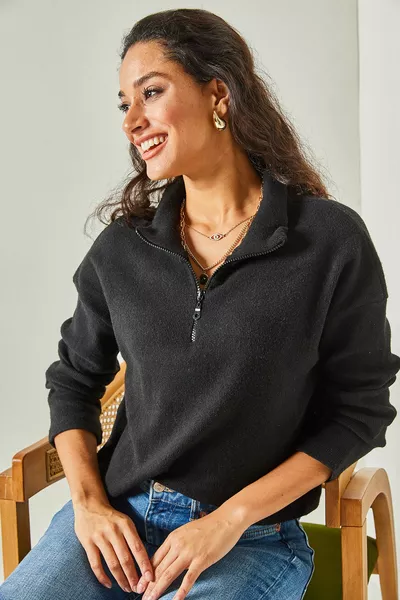 المرأة الياقة المدورة بسحاب الأكمام زر سترة منقوشة