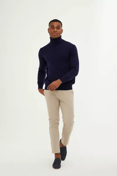 رجالي نيلي متماسك سترة طاقم الرقبة الوبر الحرة تناسب العادية