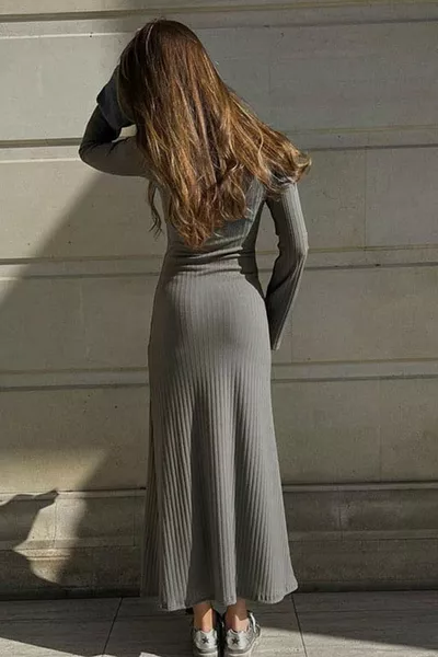 Bodycon طاقم الرقبة سروال قصير كاميسول طويل الأكمام ماكسي اللباس sp