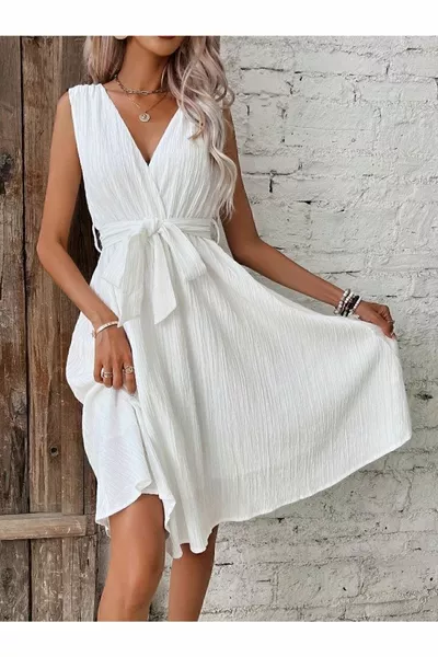 فستان صيفي بحزام أسود منخفض