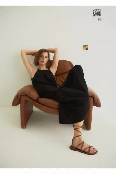 المرأة بدون كعب شريط الحجر مفصلة فتح الصيف عارضة ثوب النوم مساء اللباس الصنادل والأحذية
