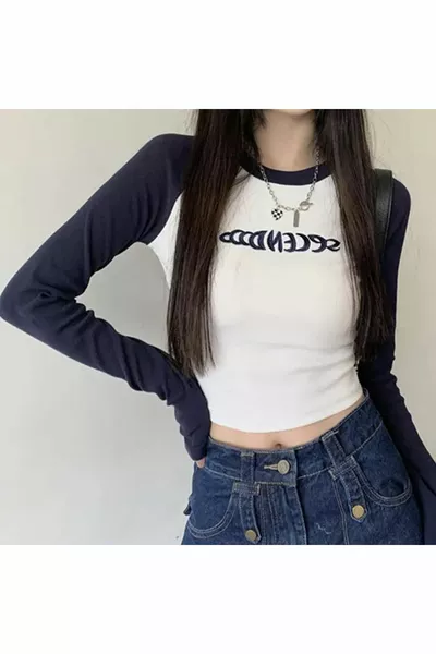 رمادي خياطة مفصلة عادي أسود نصف المرأة طويلة الأكمام المحاصيل