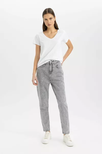 جينز تي شيرت أزرق كحلي مطبوع بقصة عادية / قصة عادية