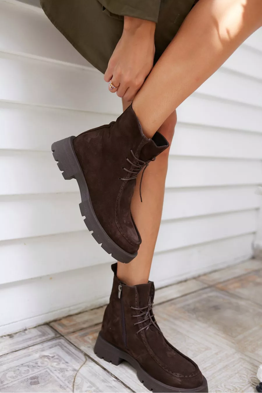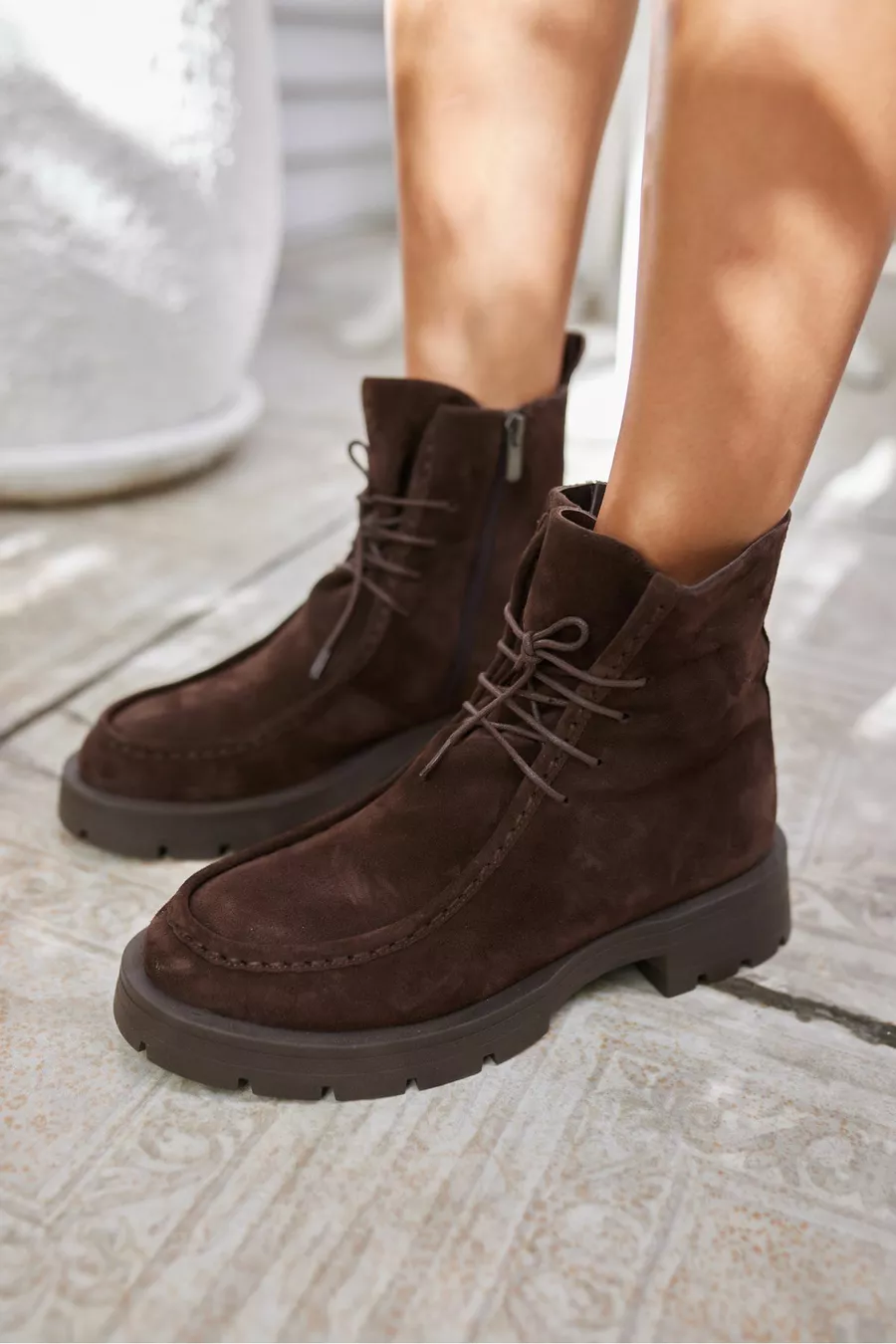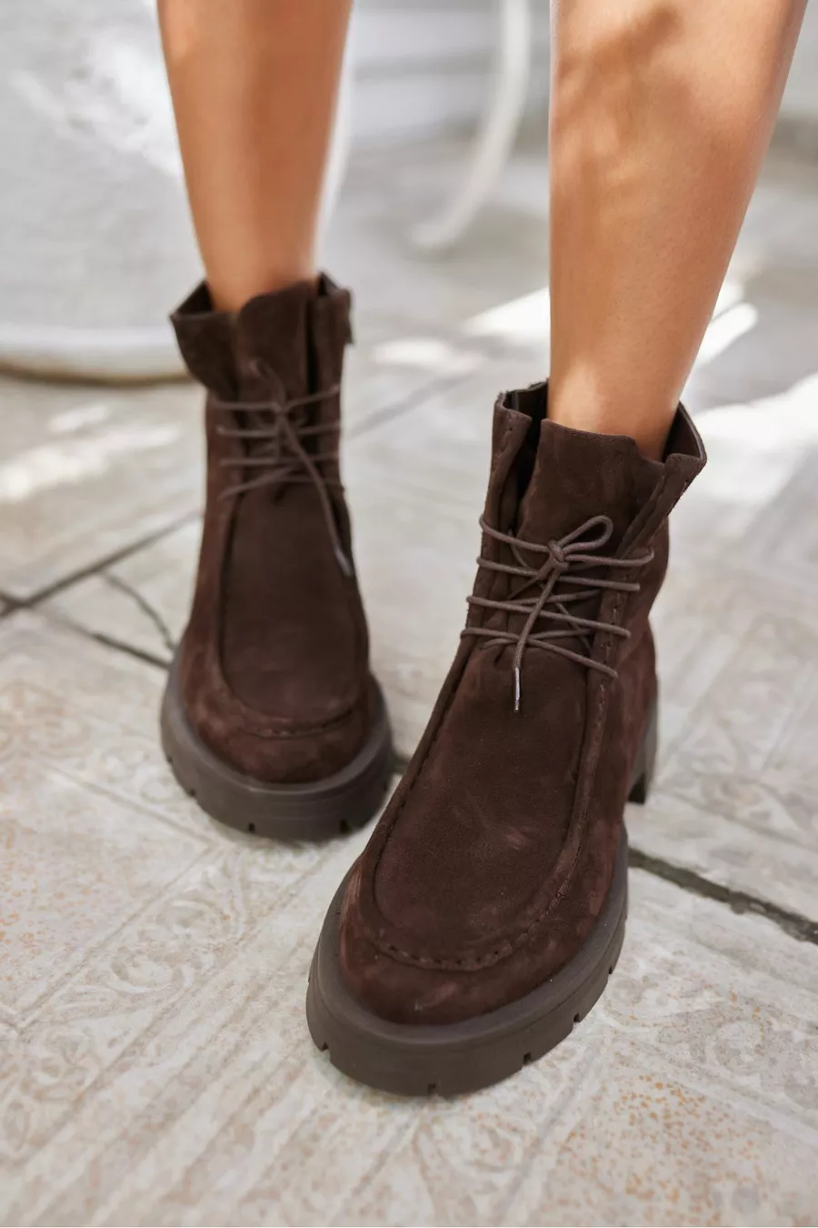 أتو المرأة القهوة الجلد الحقيقي أحذية من جلد الغزال