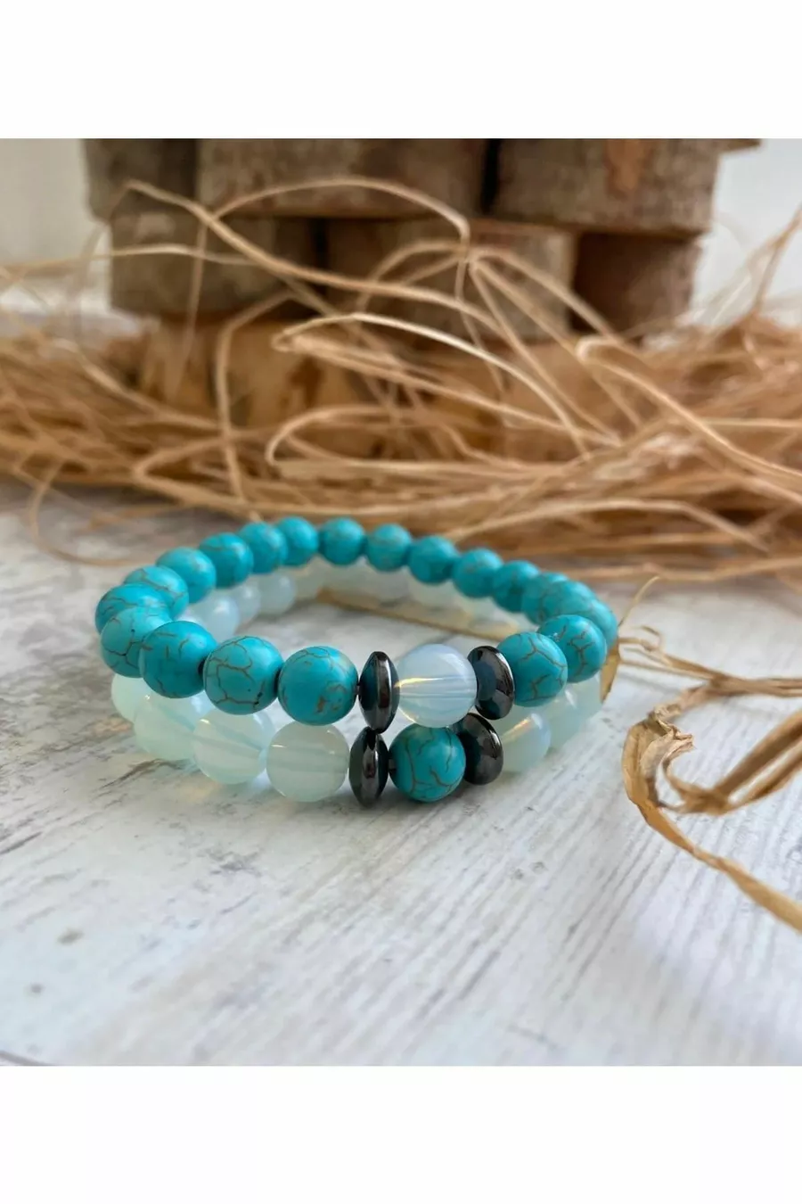 أحجار الأوبال الطبيعية وحجر القمر والفيروز ستكمل تناغمكم الرائع كزوجين عزيزين