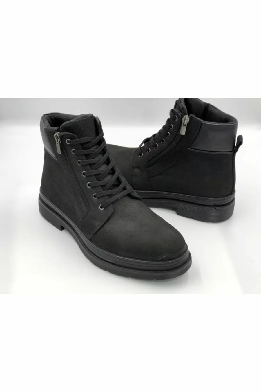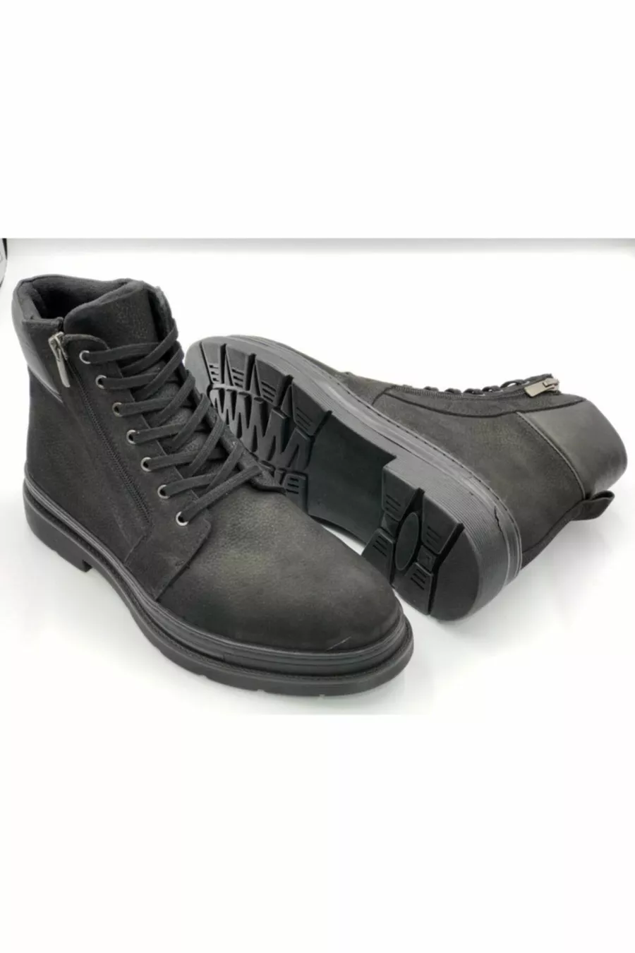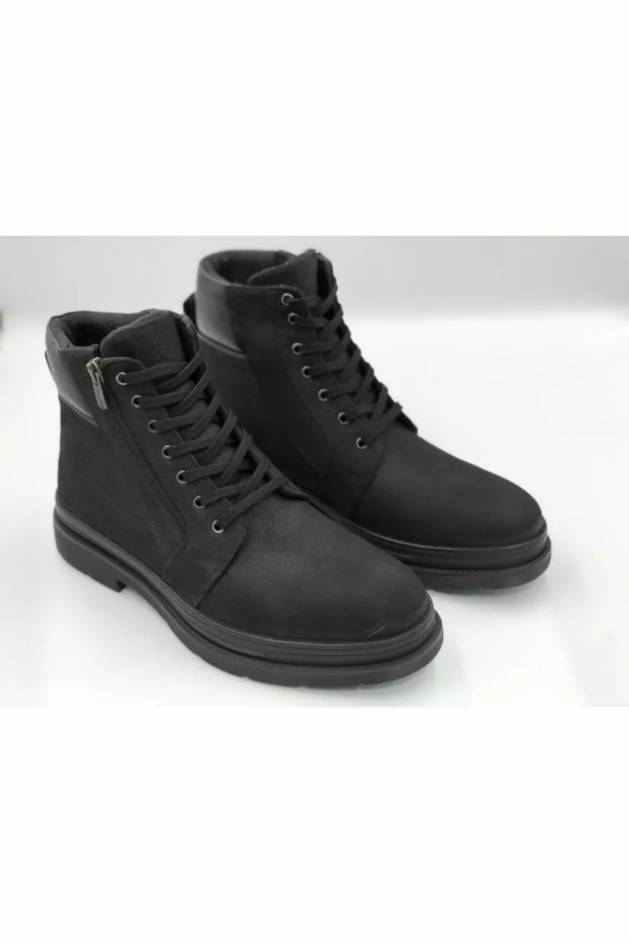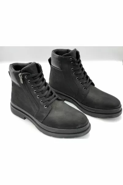 أحذية بريدية جلدية أصلية سوداء للرجال مع سحاب