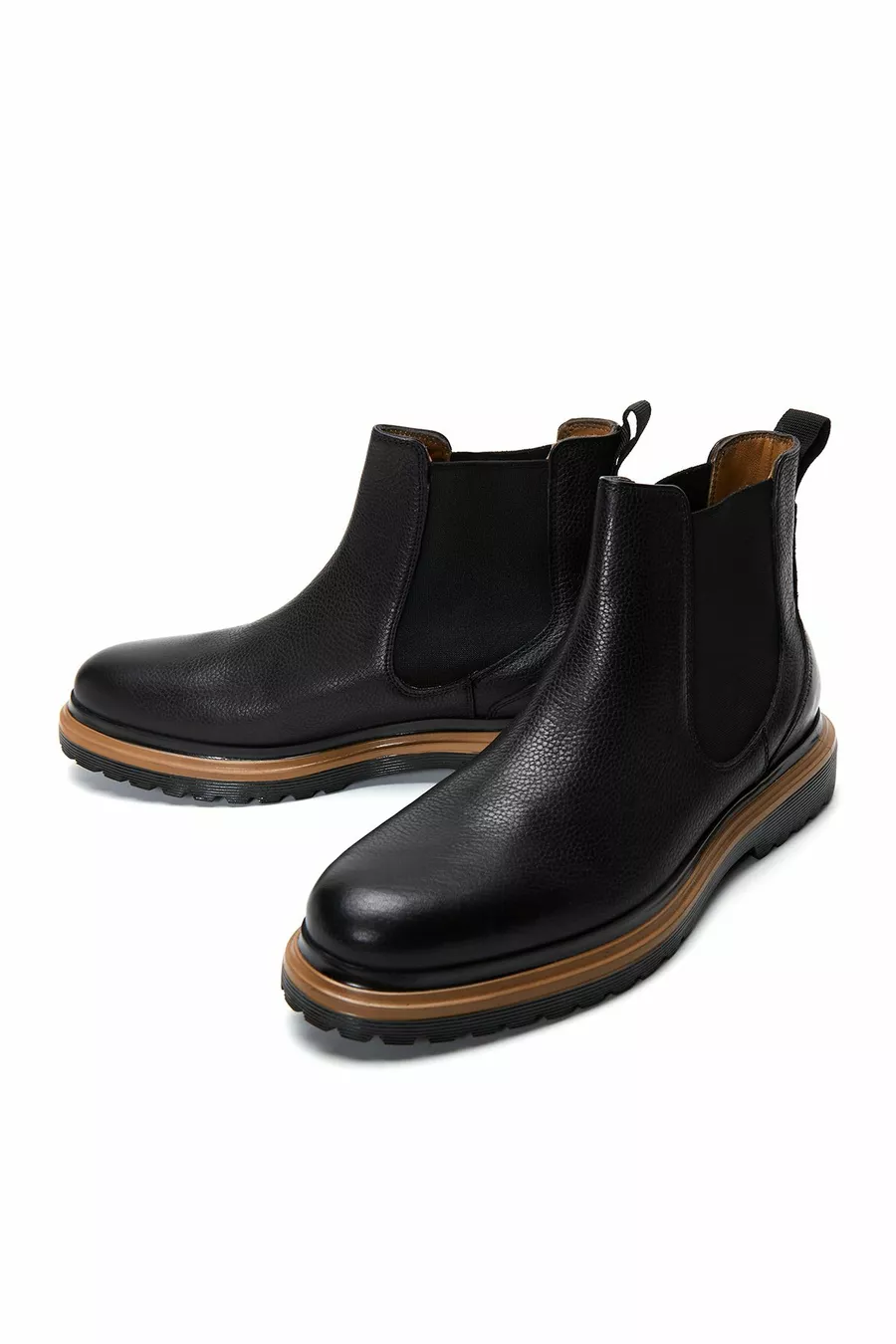 أحذية تشيلسي رجالية من الجلد الأسود الكاجوال ft