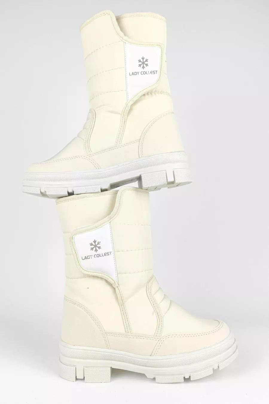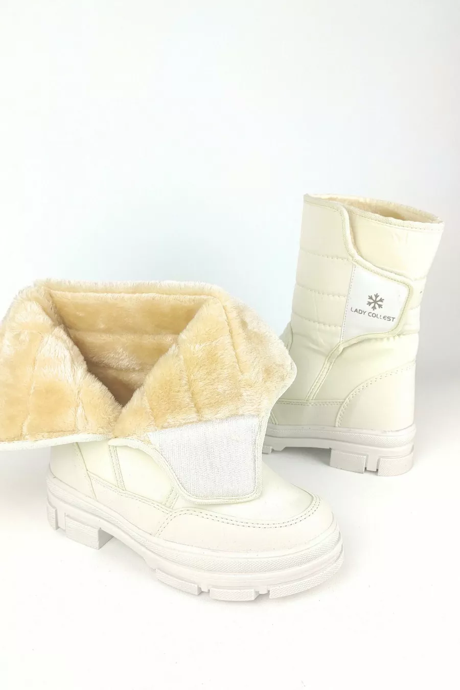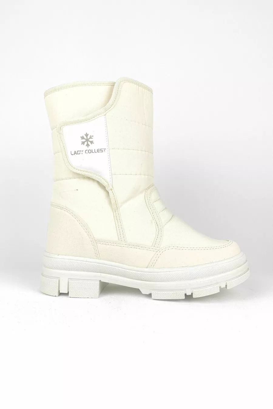 أحذية ثلجية نسائية باللون البيج مع نعل حراري مضاد للانزلاق من الفيلكرو في السجل