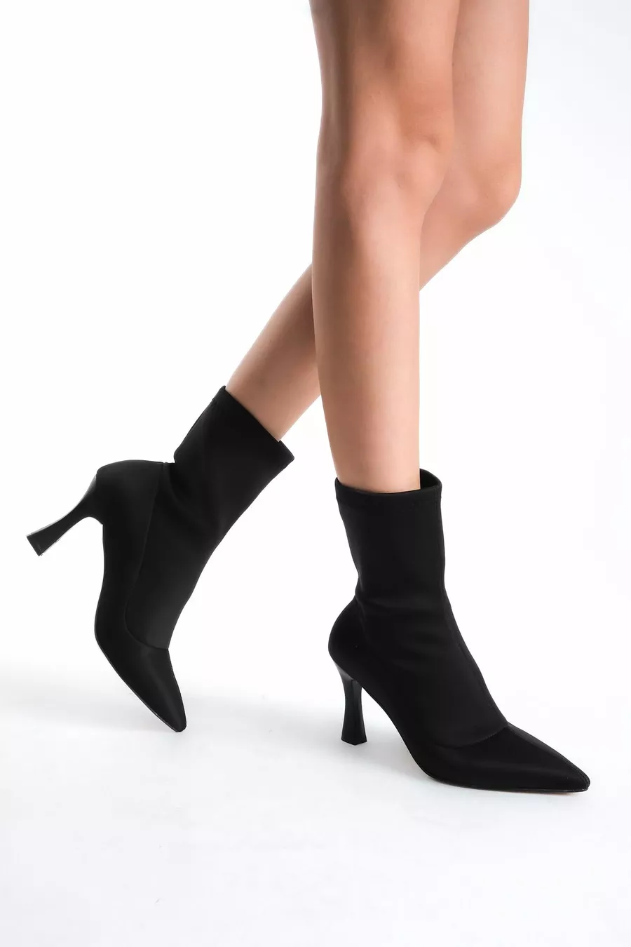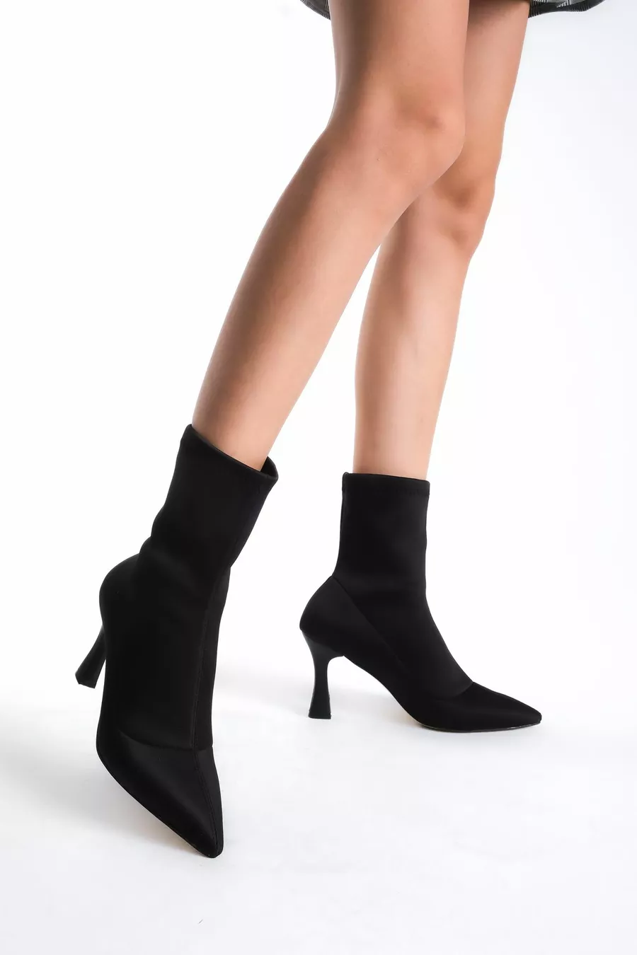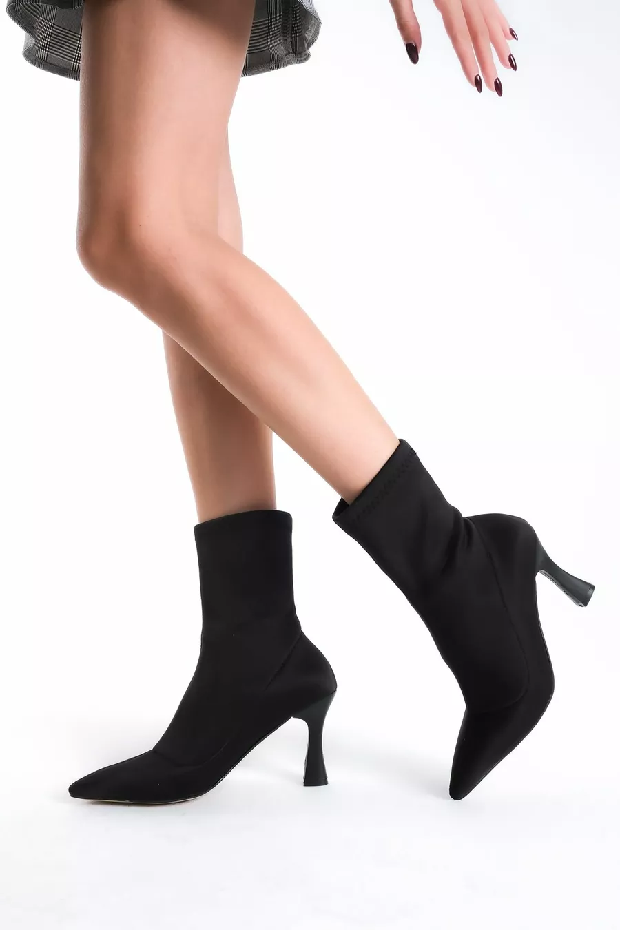 أحذية نسائية سوداء ذات كعب رفيع مطاطية