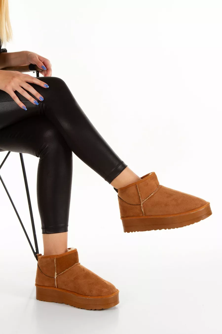 أحذية نسائية قصيرة من جلد الغزال داخل أحذية نعل سميك غامض