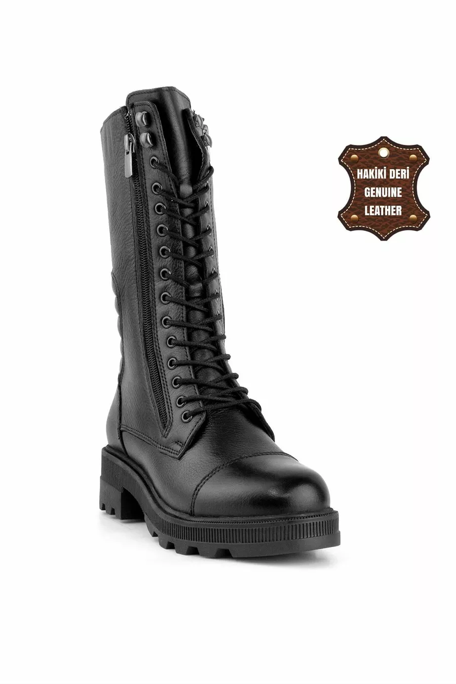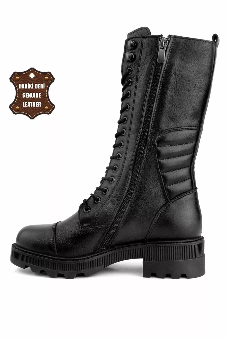 أحذية عسكرية جلدية نسائية أصلية أسود