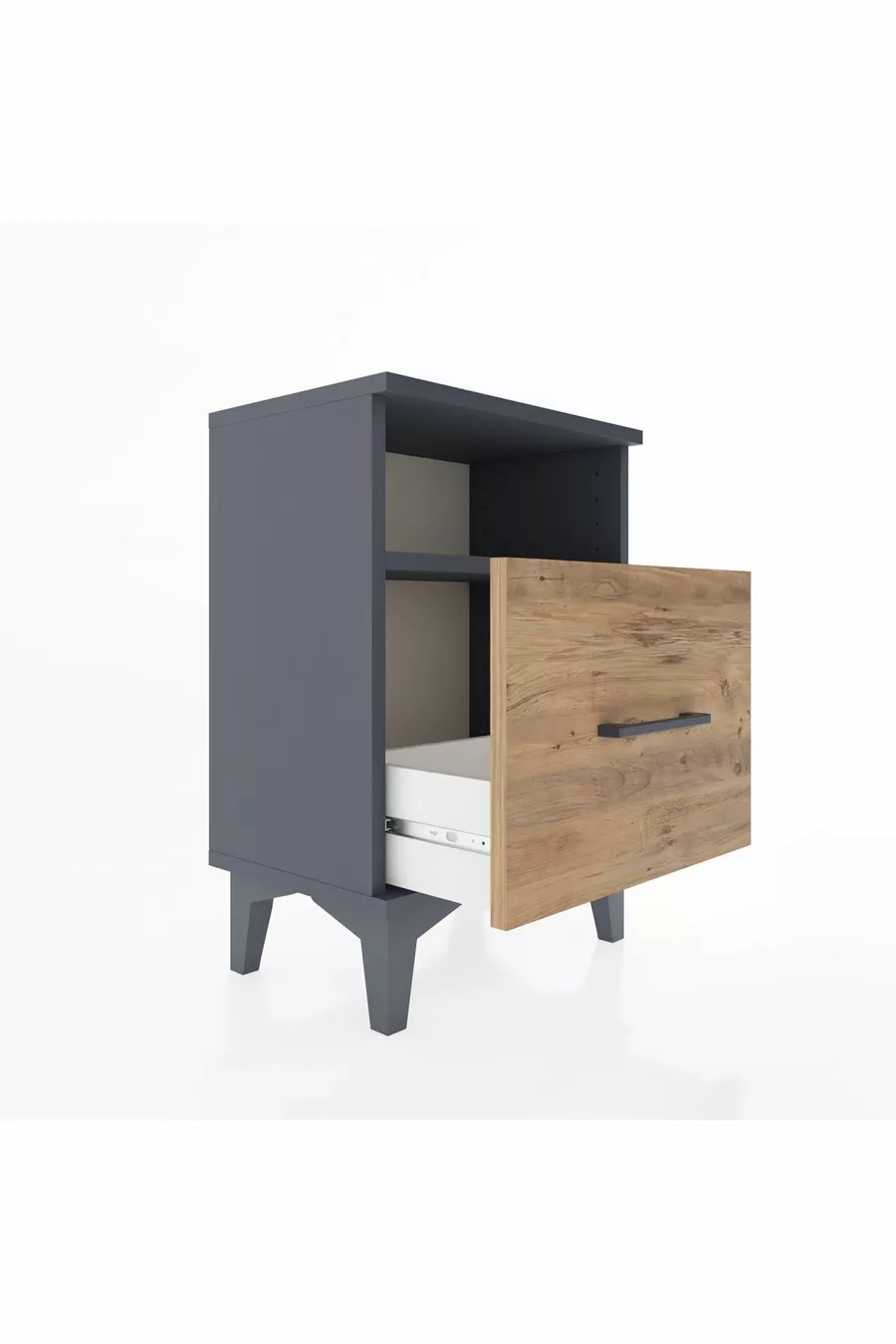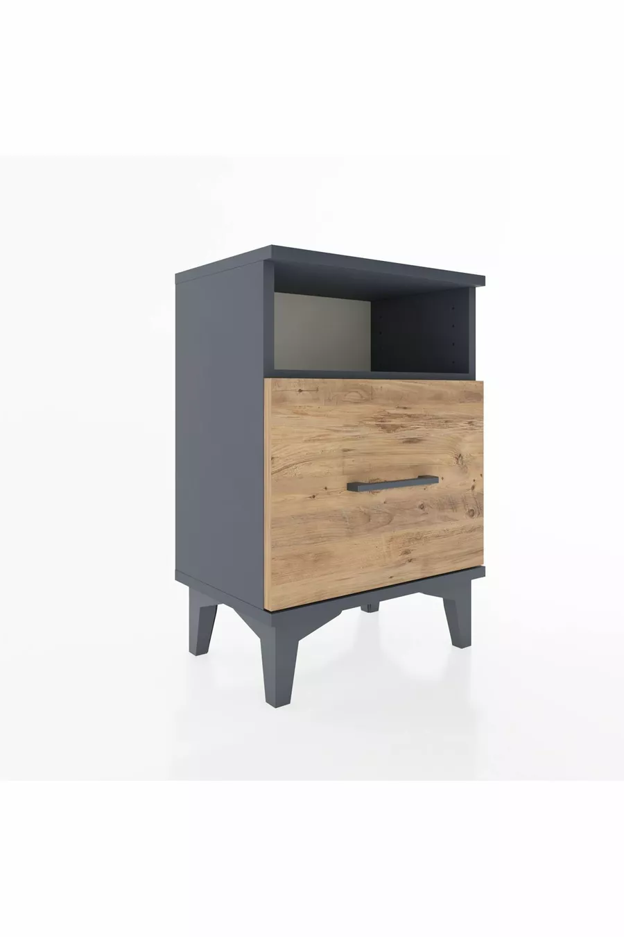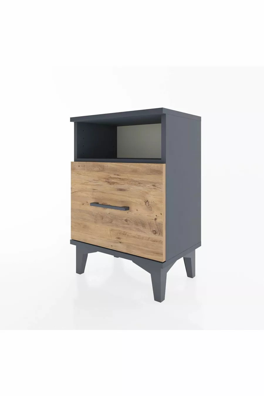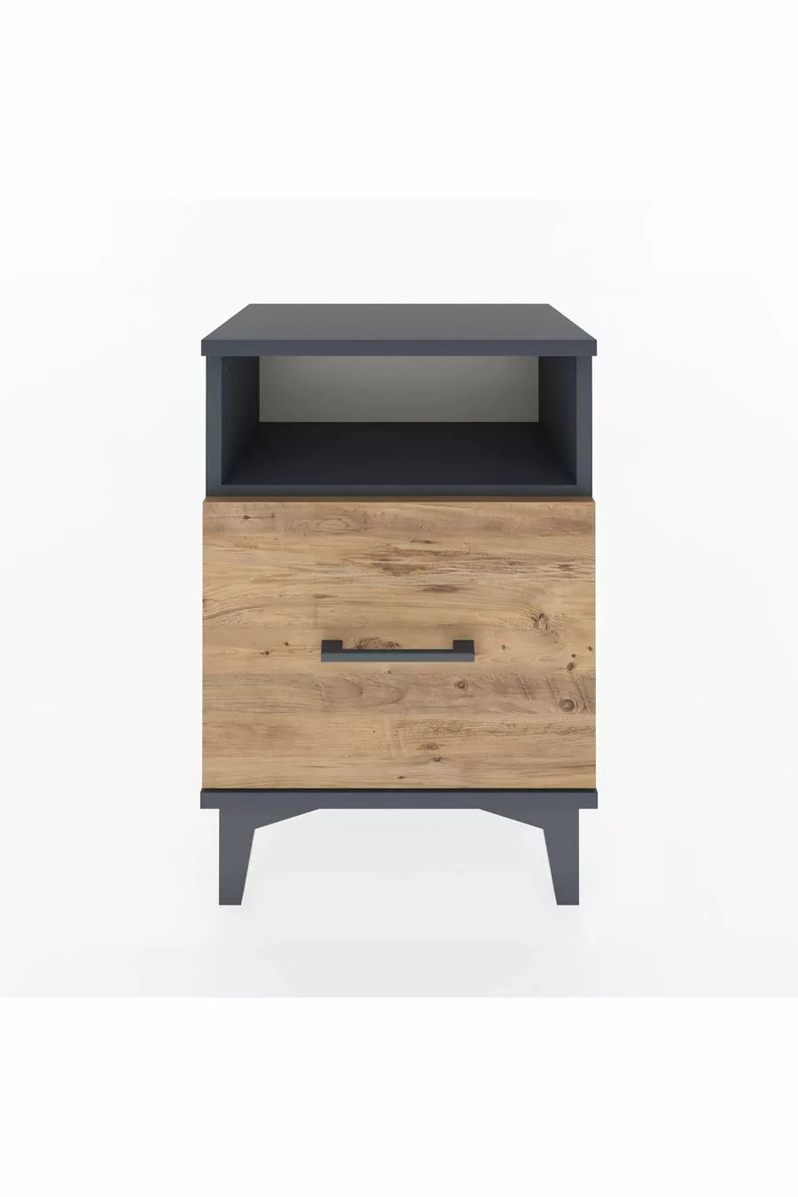 أرجس كومودين ذو رف واحد ودرجين، أنثراسيت-صنوبر