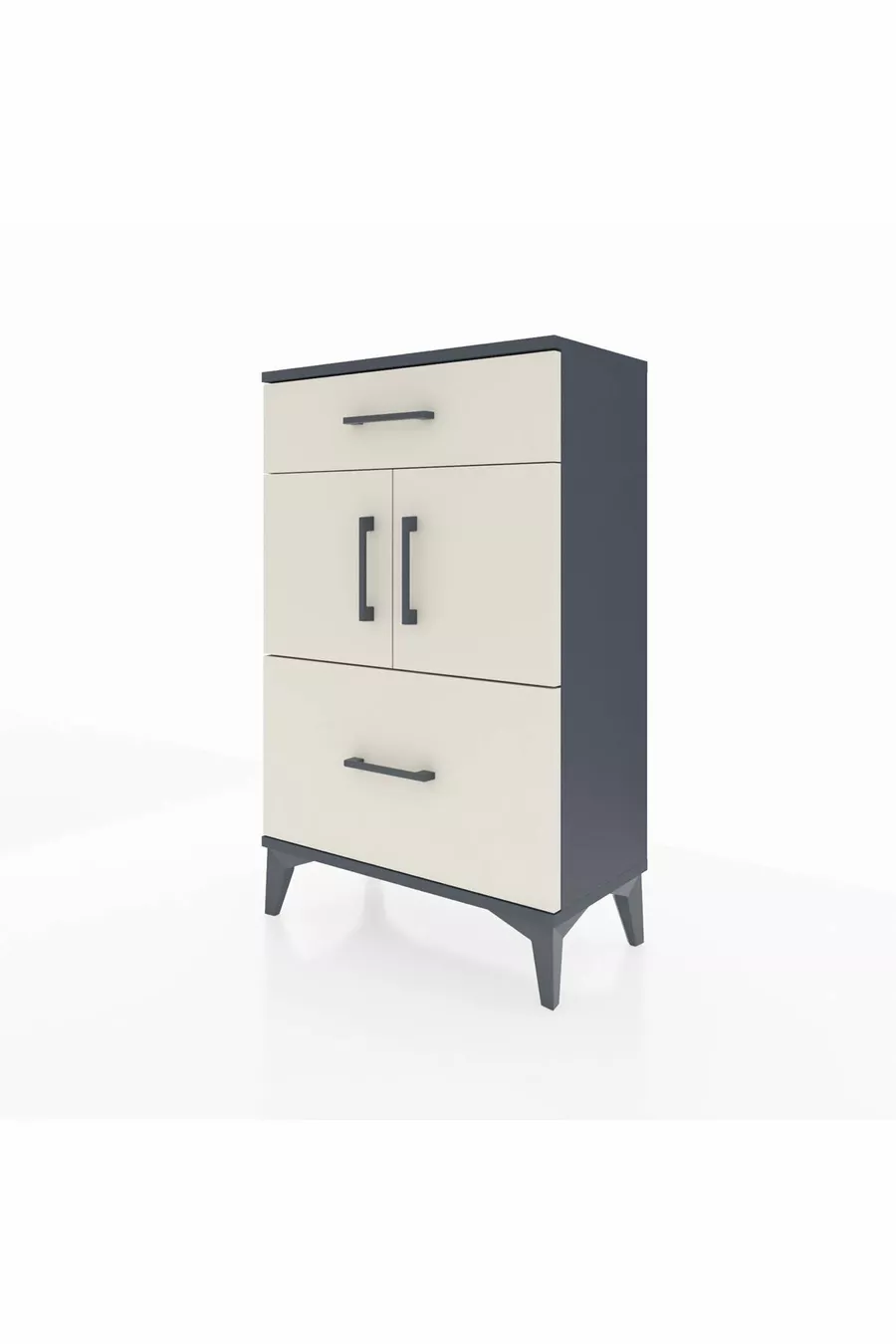 أرجس كومودين رف واحد مع درجين وغطاءين - رمادي فحمي-حجر رملي