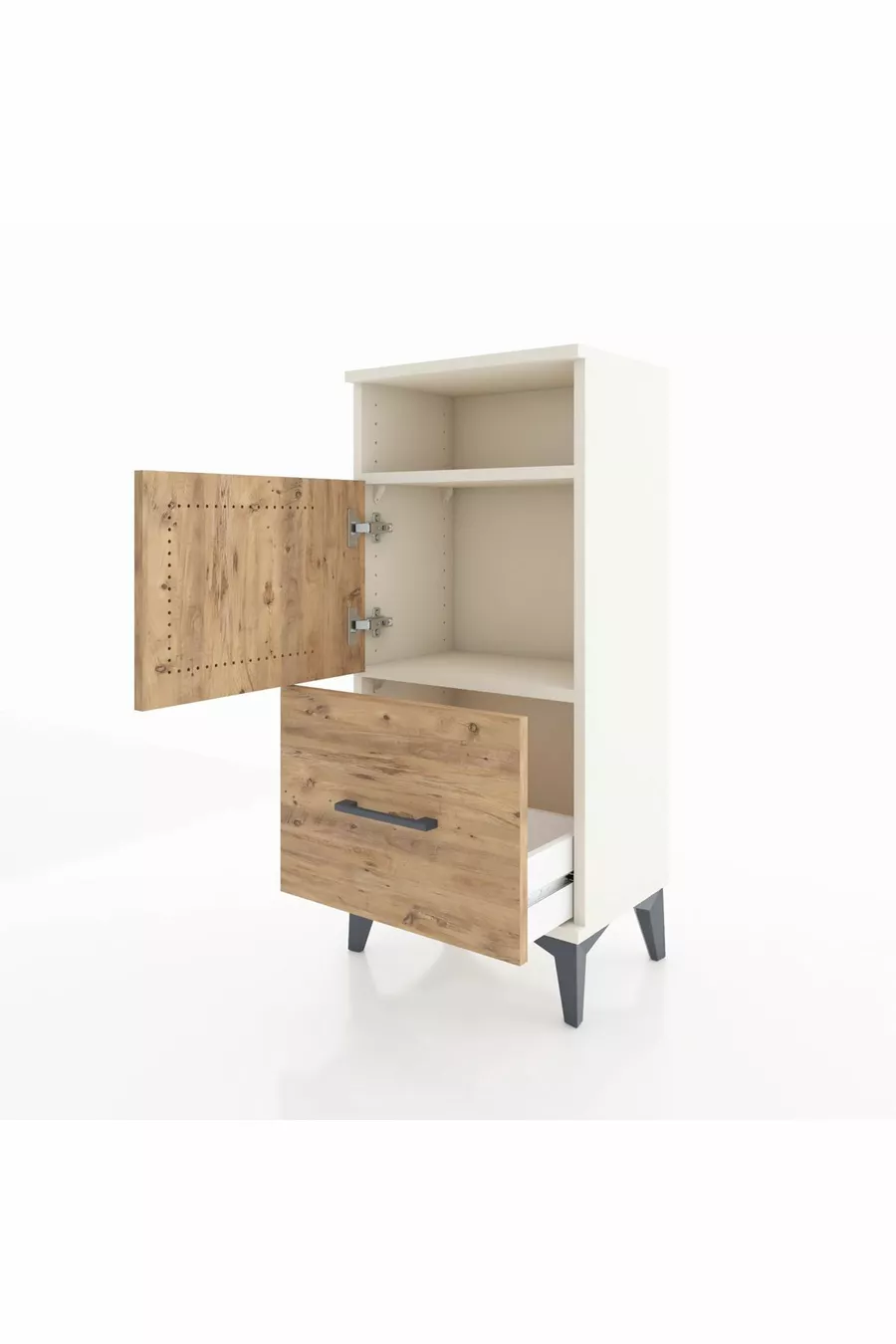 أرجيس كومودين ٢ رف مع درج واحد و٢ باب حجر القمر-صنوبر
