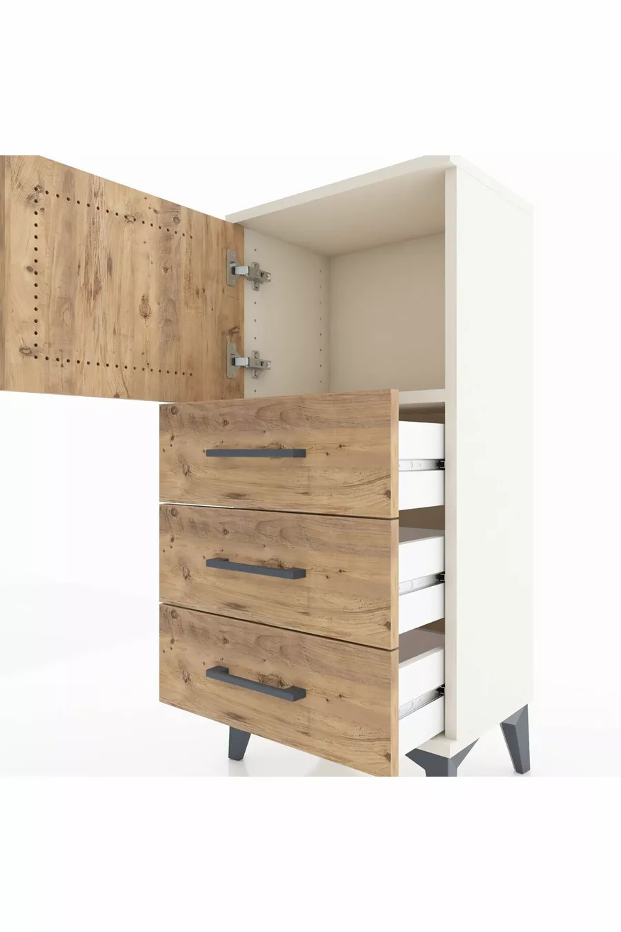 أرجيس كومودين رف واحد 3 أدراج باب واحد حجر القمر-صنوبر