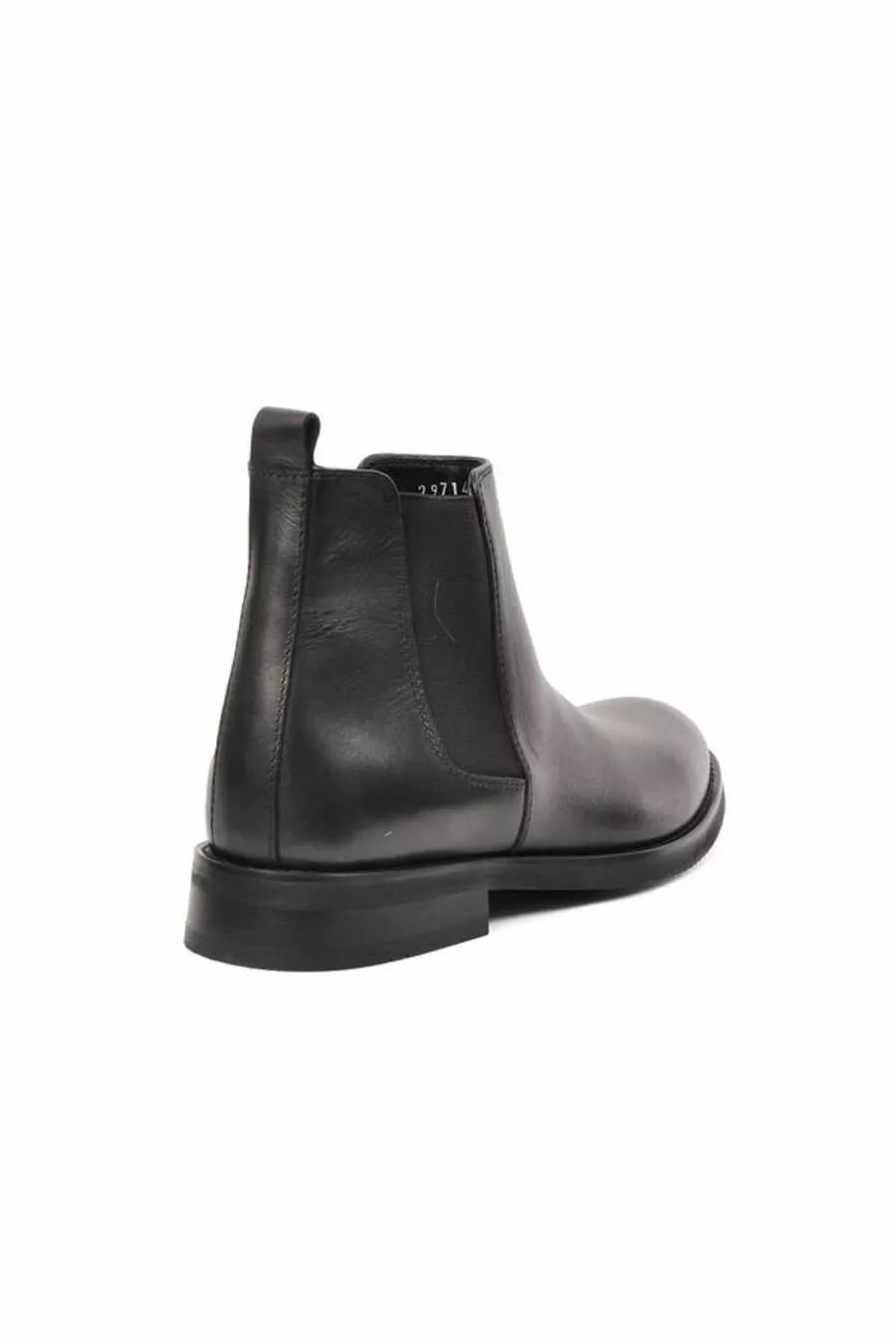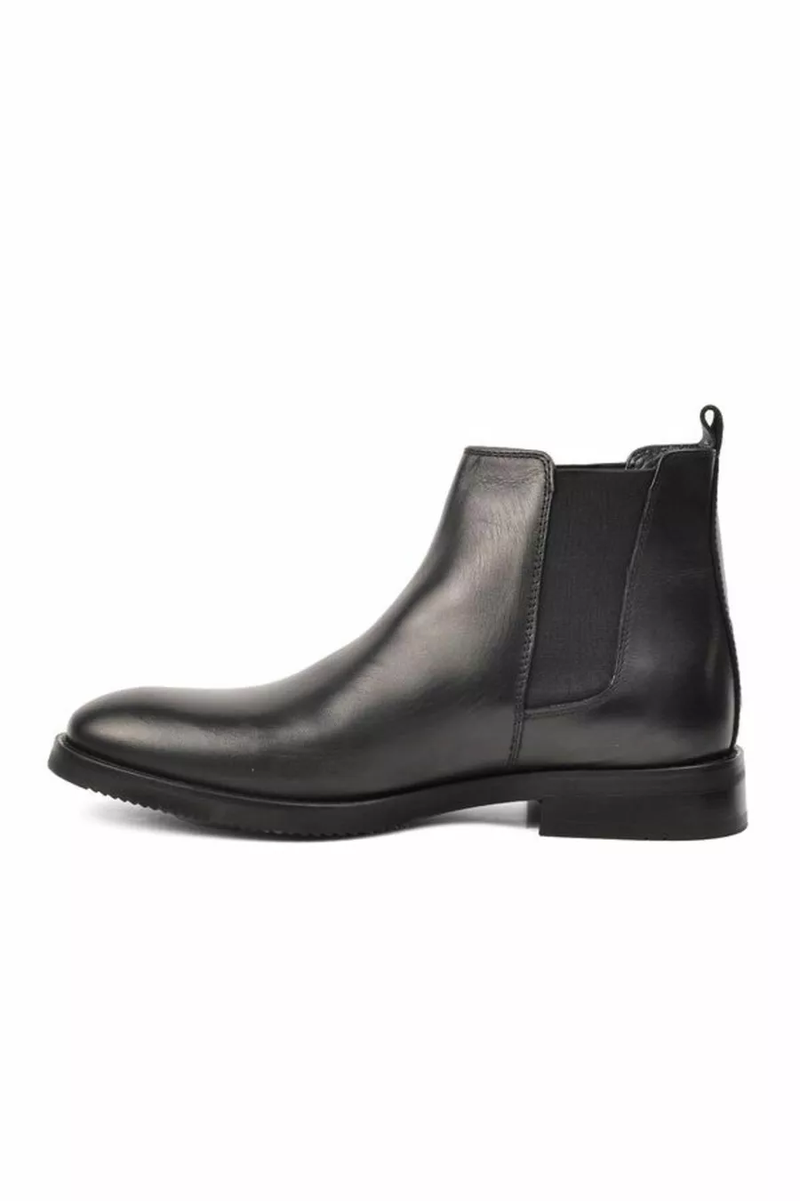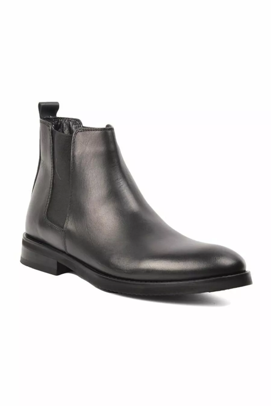 أسود من الداخل إلى الخارج جلد طبيعي أحذية تشيلسي للرجال