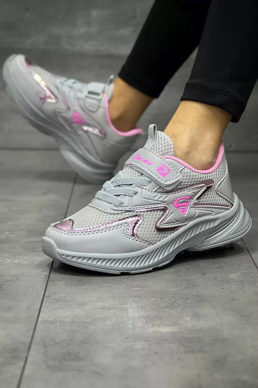 أطفال رمادي الوردي الدانتيل متابعة واحدة الفيلكرو مرنة خفيفة الوزن تنفس للجنسين شبكة أحذية رياضية أحذية رياضية
