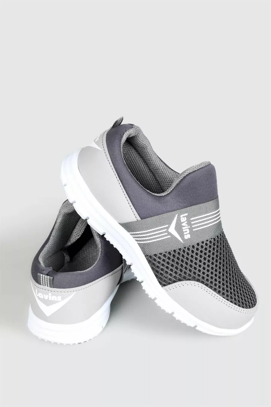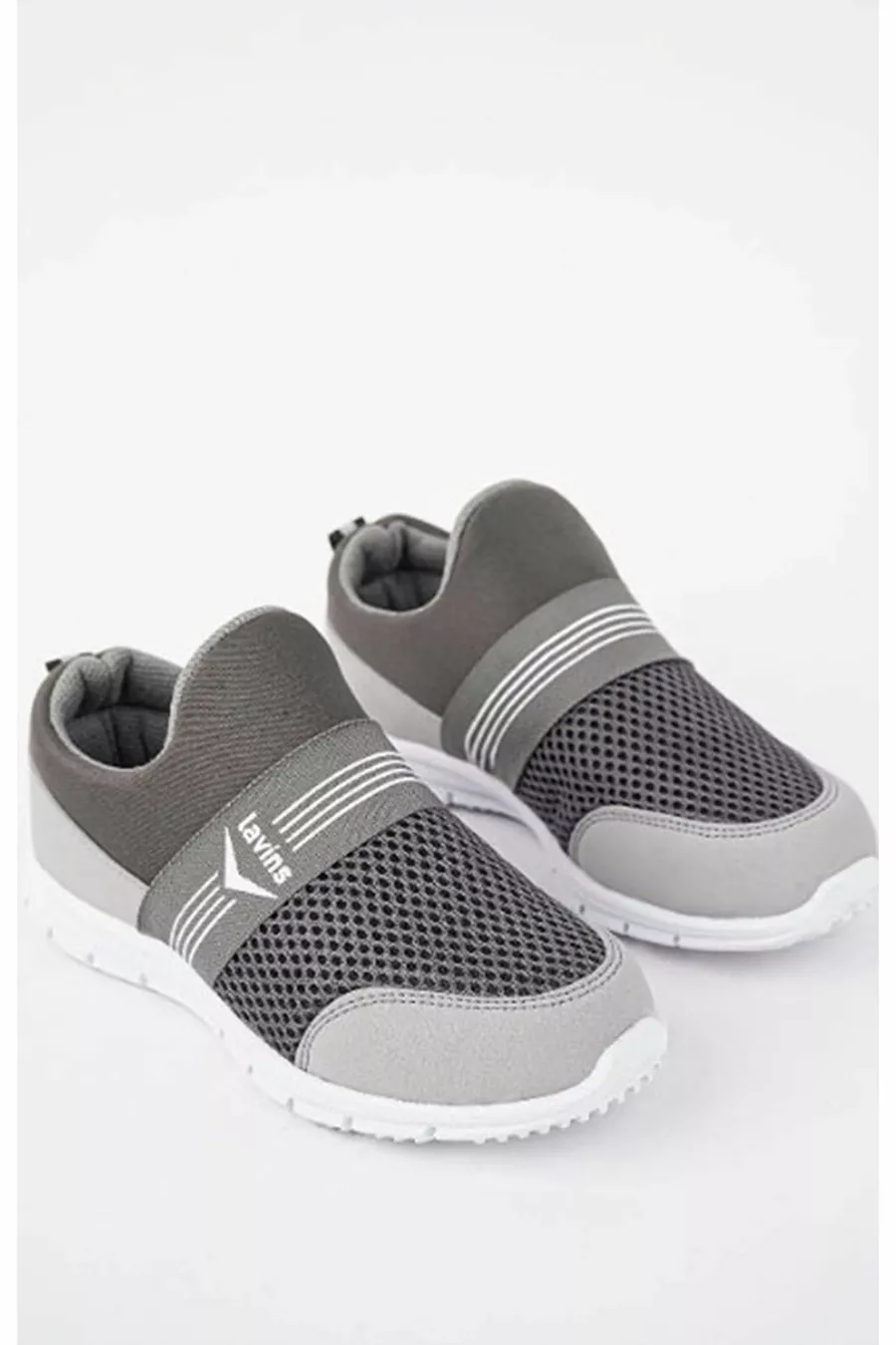 أطفال رمادي للجنسين دانتيل مريح مرن شبكة أحذية رياضية عارضة