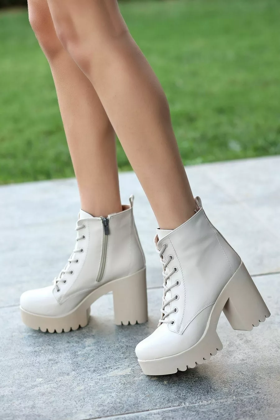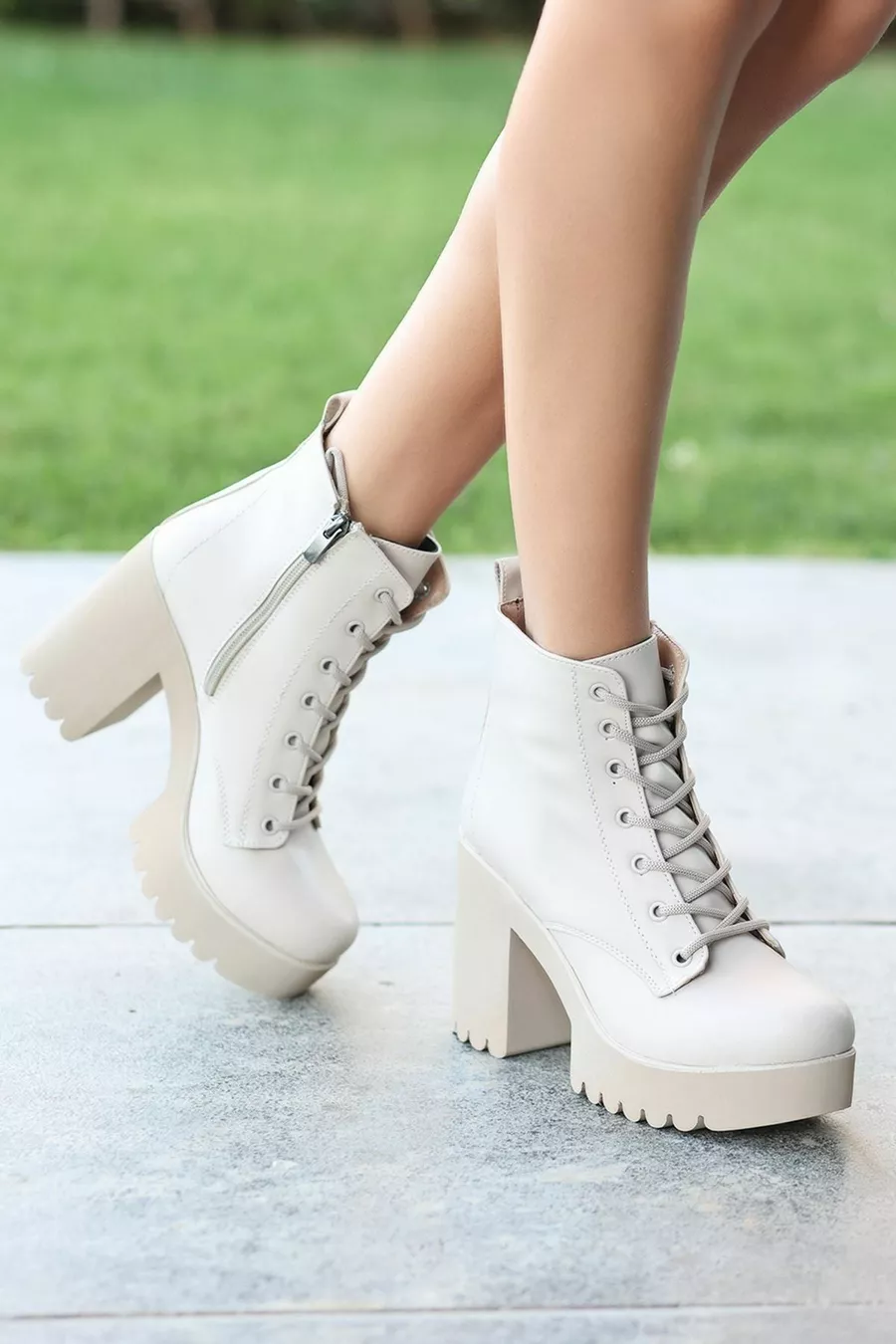 أندي ماتي جلد الدانتيل متابعة مفصلة أحذية ذات كعب سميك بيج