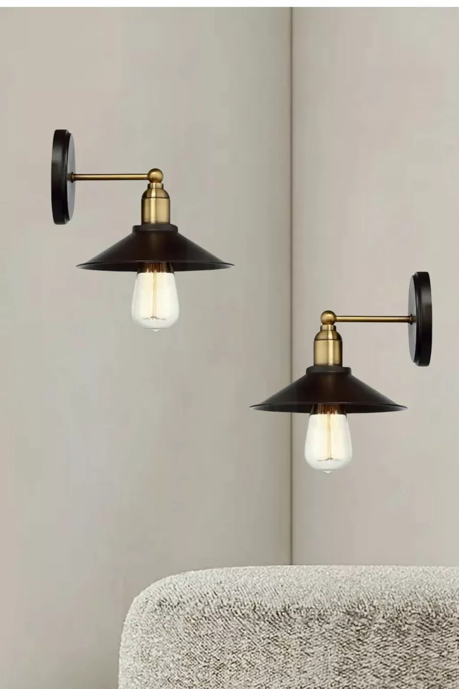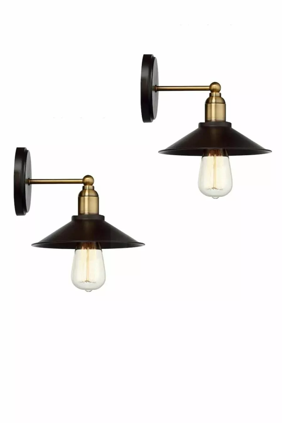 اثنان من الأبليكات بأسلوب ريفي عتيق باللون الأسود مع مصابيح على شكل مصباح