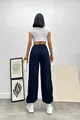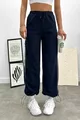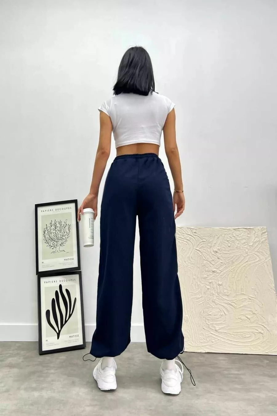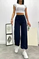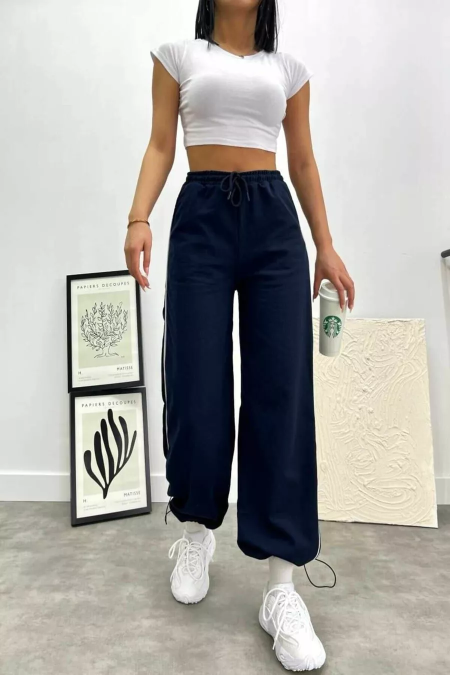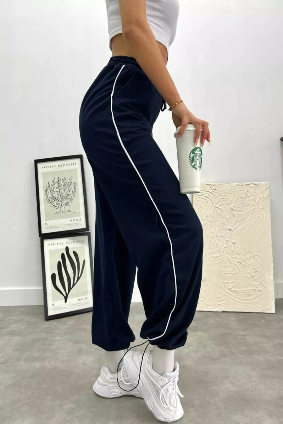 الأزرق الداكن الجانب التحيز فضفاضة بنطال رياضي للجنسين