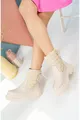 البيج المظلة نموذج أحذية الثلج مع الأربطة الخلفية
