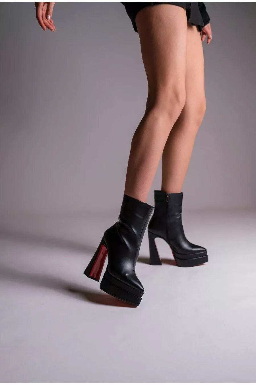 الجلد الأسود منصة مزدوجة تصميم مخصص أحذية نسائية أحذية موجو
