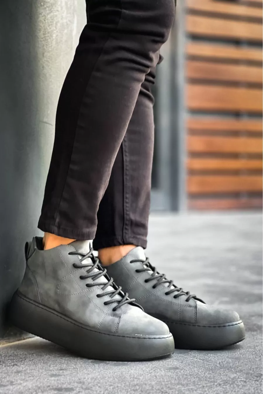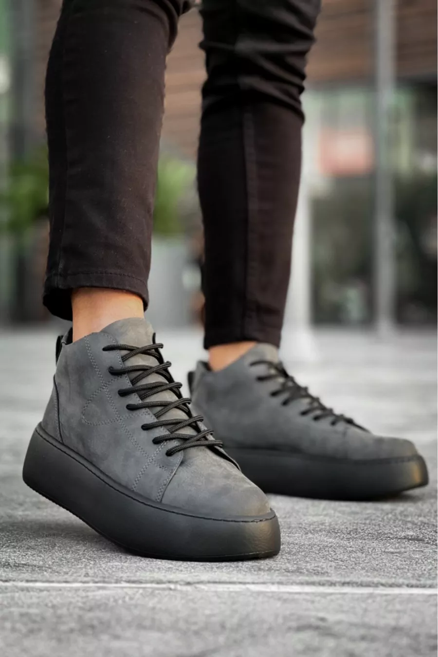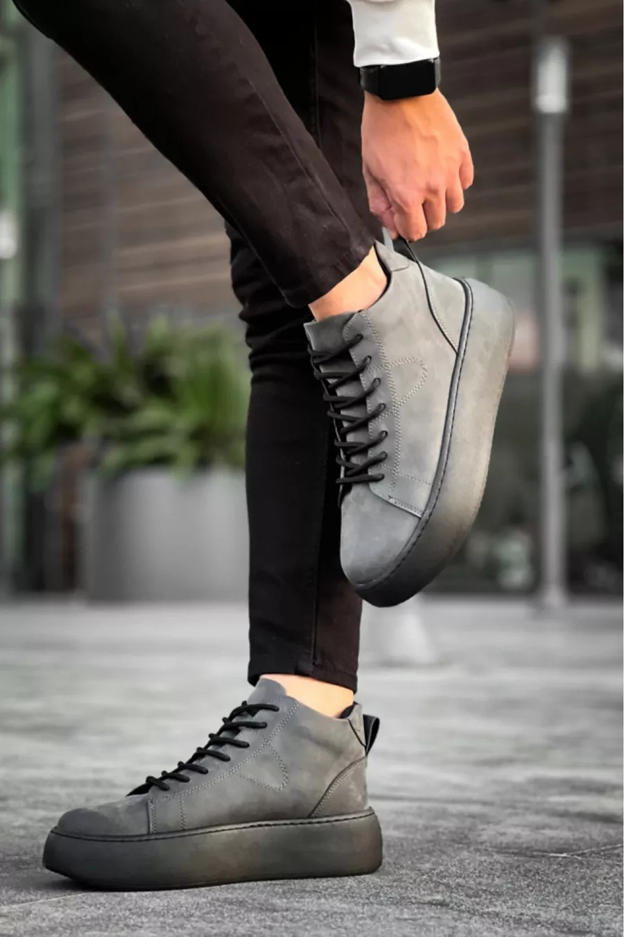 الرباط متابعة الرجال عالية الأسود وحيد أنثراسايت الأحذية الرياضية