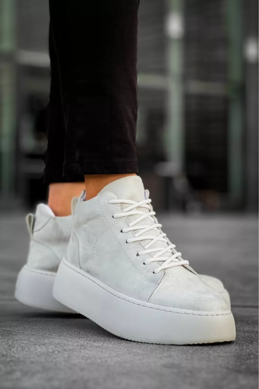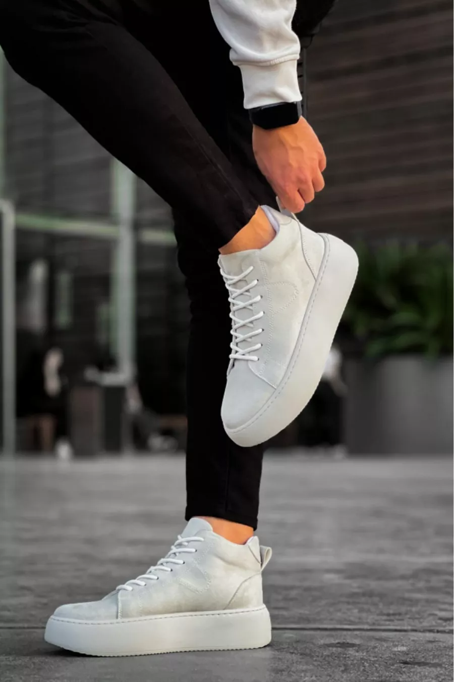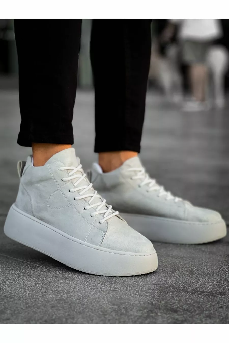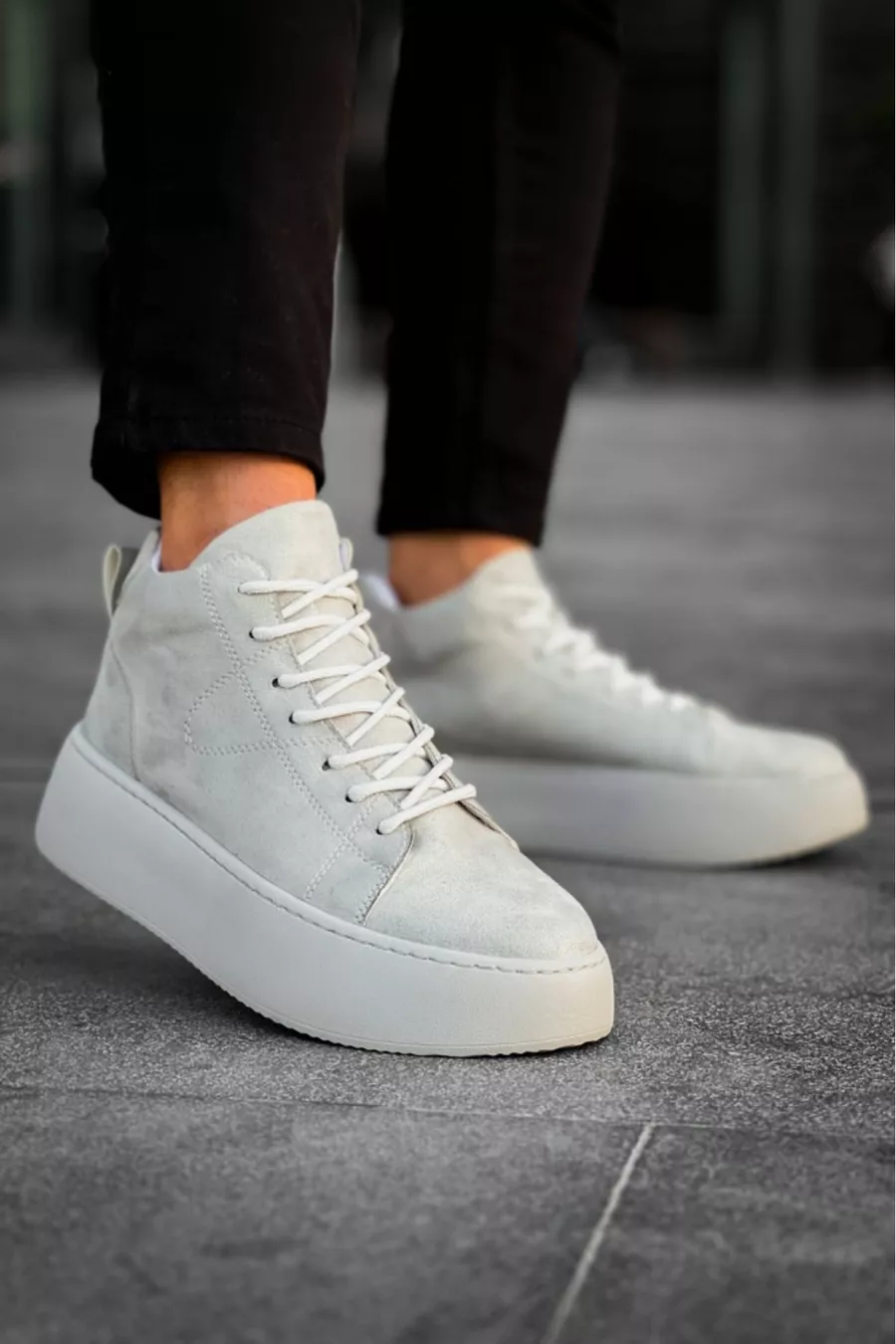 الرباط متابعة الرجال عالية النعل المستوردة رمادي من جلد الغزال الأحذية الرياضية