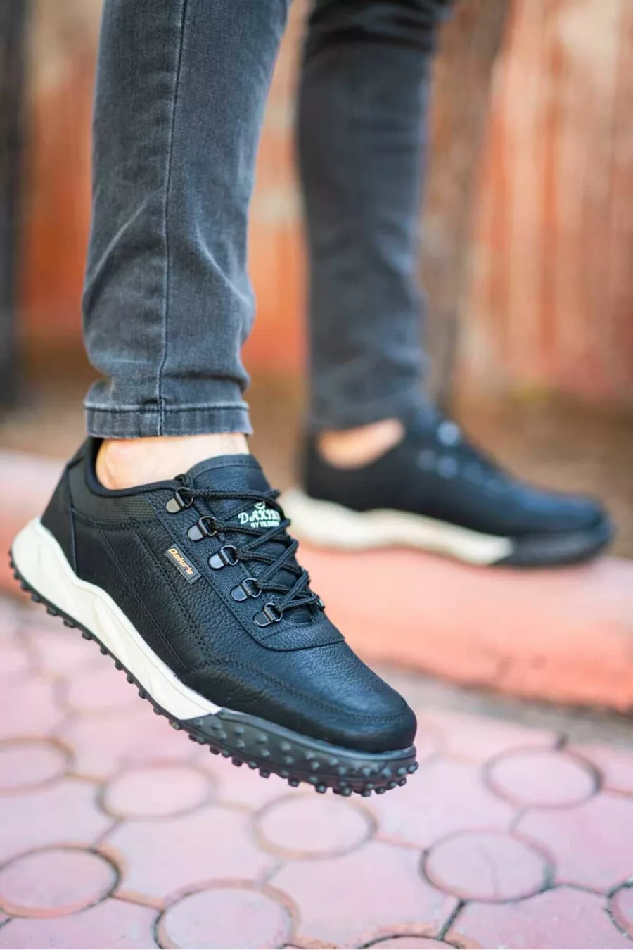 الرجال الأسود الجلود DK العظام عارضة للماء حذاء رياضي