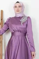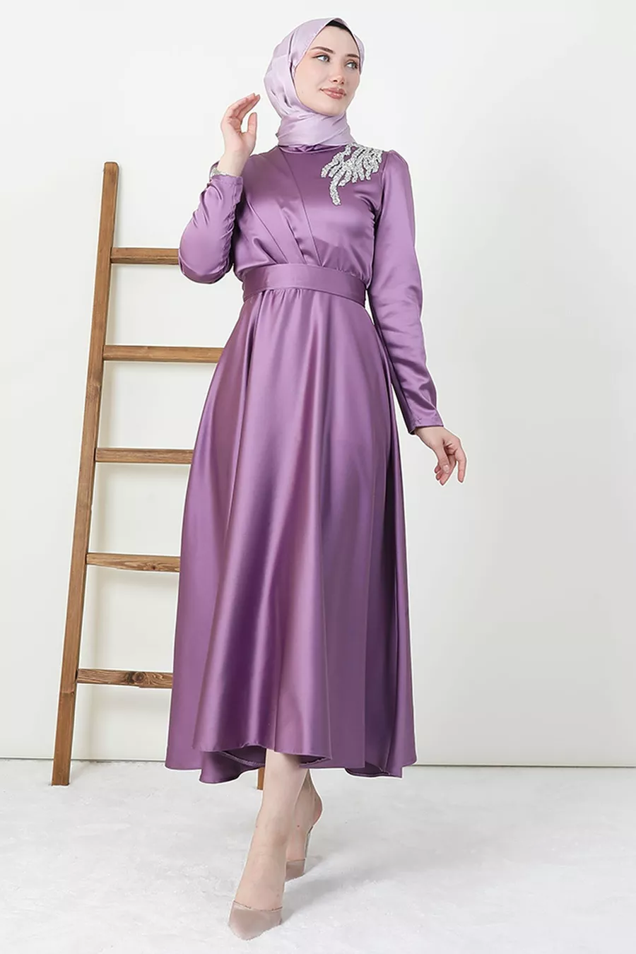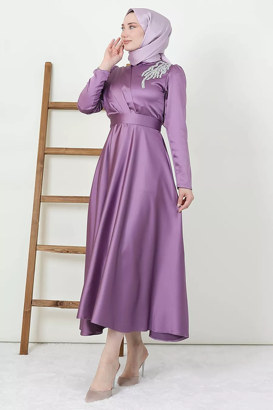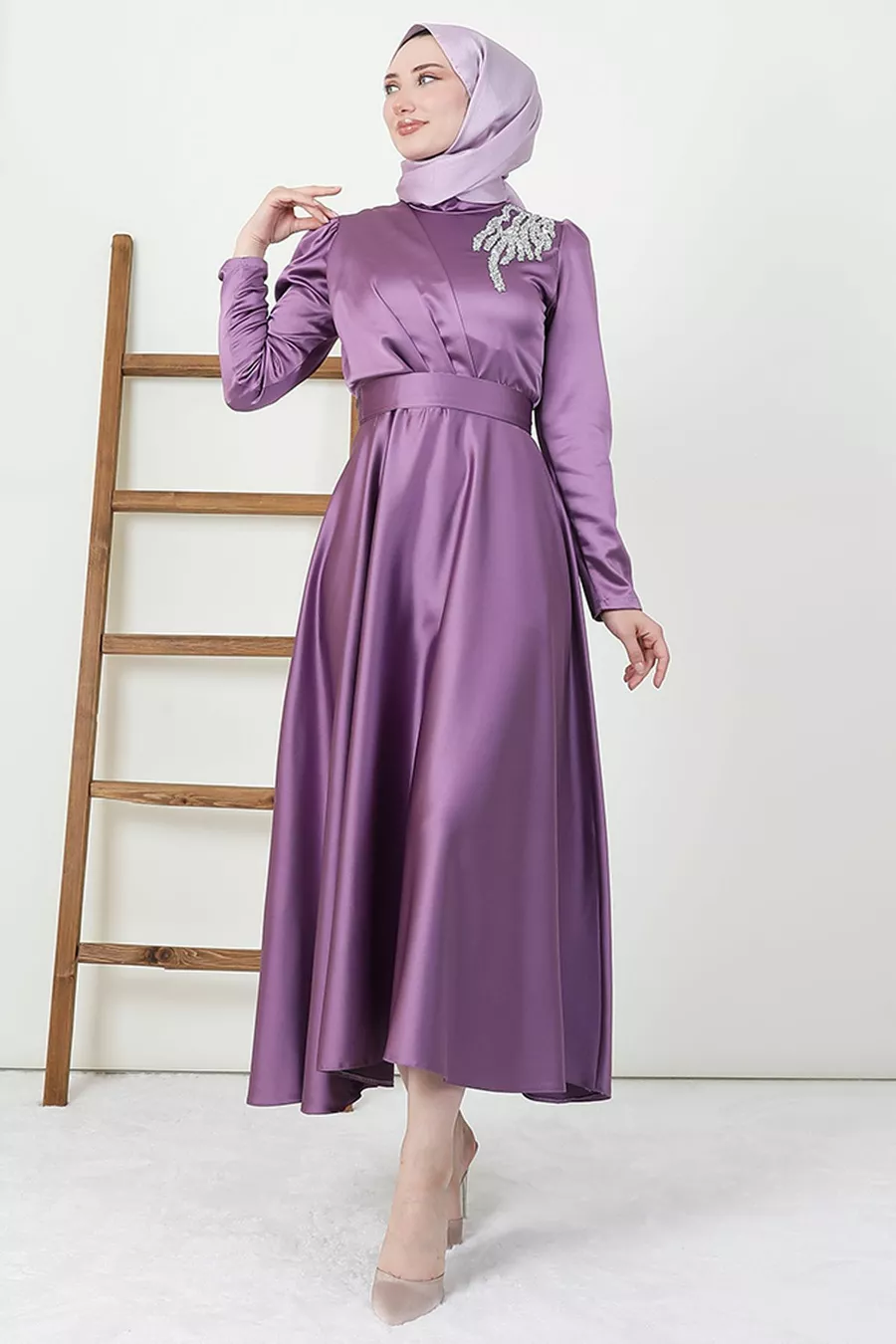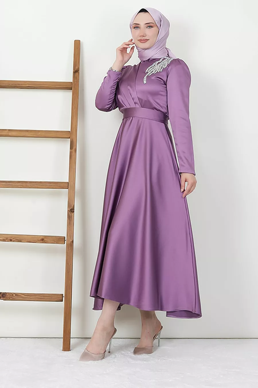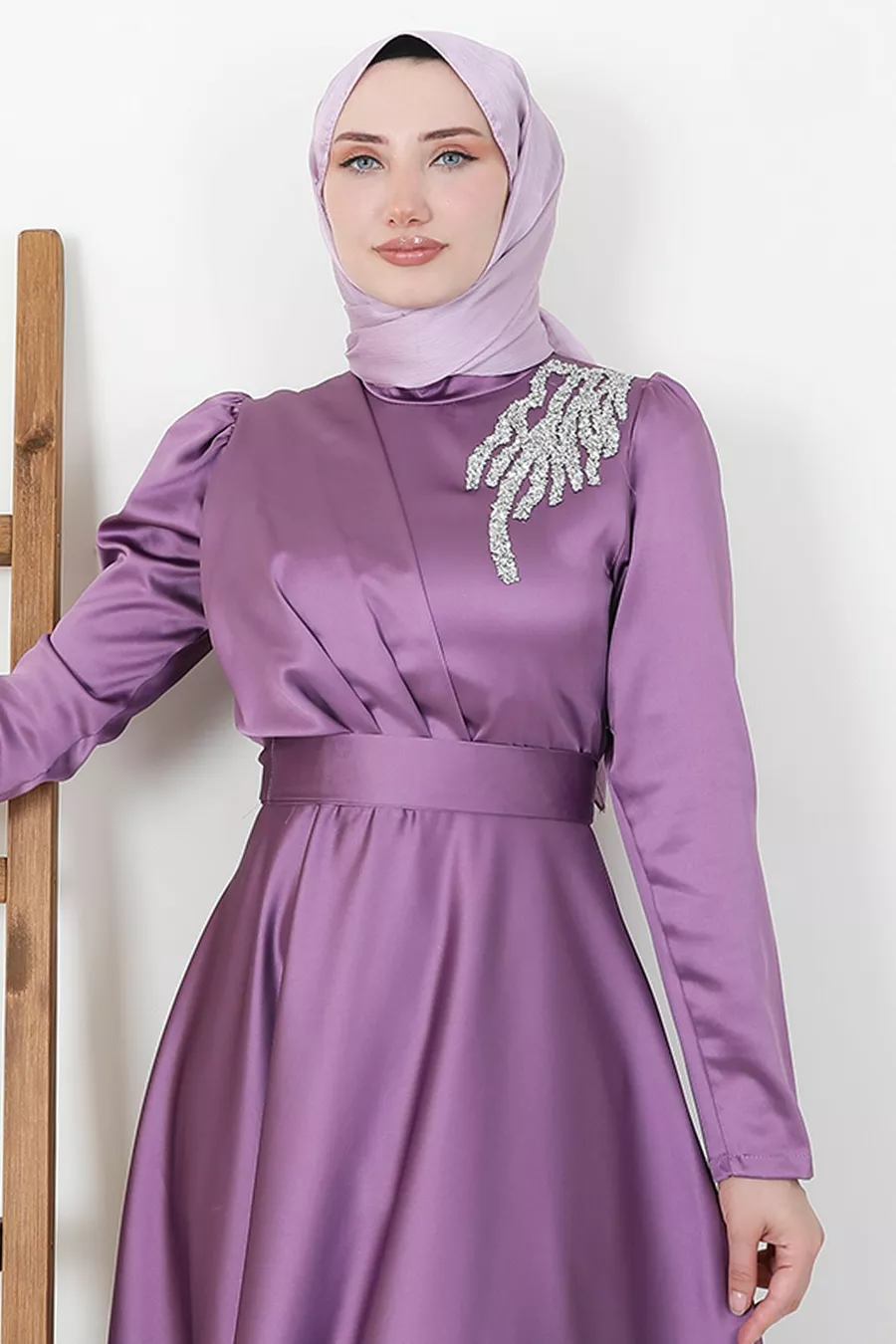 الساتان مساء اللباس أرجواني مع حجر الكتف
